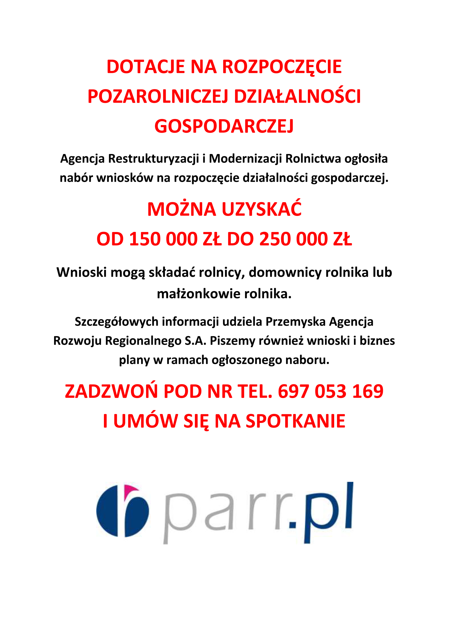 ARiMR ogłasza nabór wniosków o dotacje na rozpoczęcie pozarolniczej działalności gospodarczej