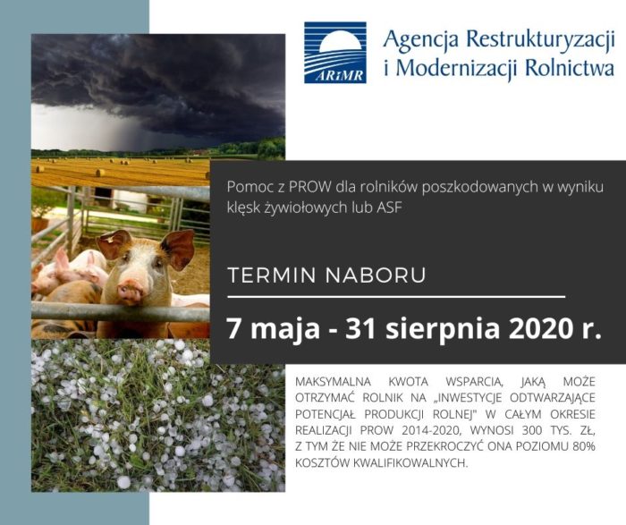 Pomoc z PROW dla rolników poszkodowanych w wyniku klęsk żywiołowych lub ASF